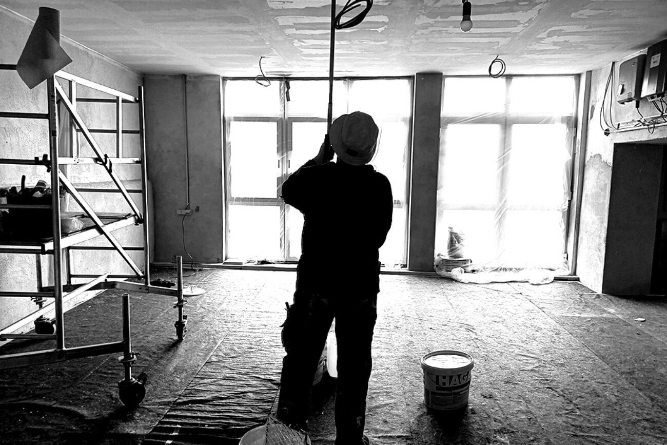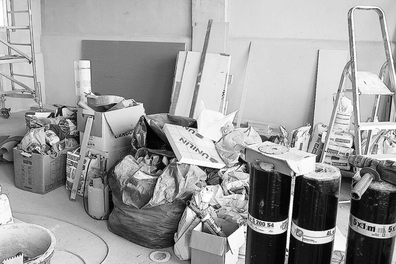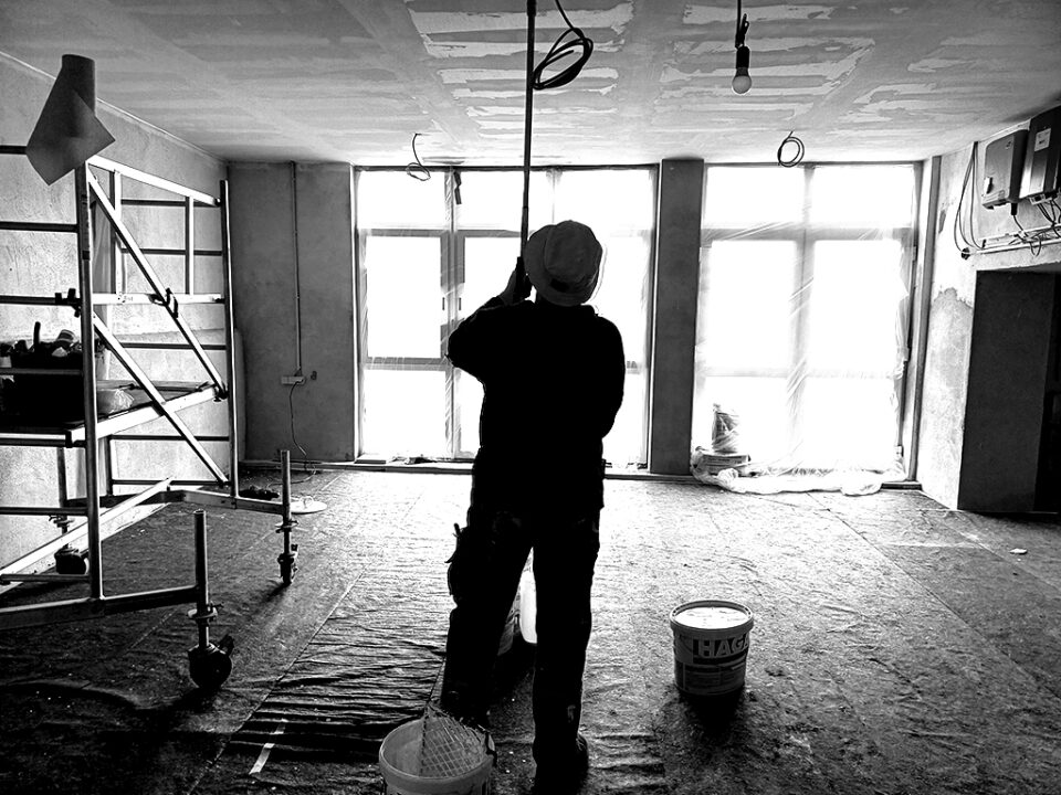 A workshop filled to a height of one and a half metres with things that people had not cleared away for decades. Dust: building dust, decades of dust, cobwebs, tools from another time covered the floor. It took 7 years for it to become the new studio and 28 years for Andi Goral to be able to run a painting studio again.