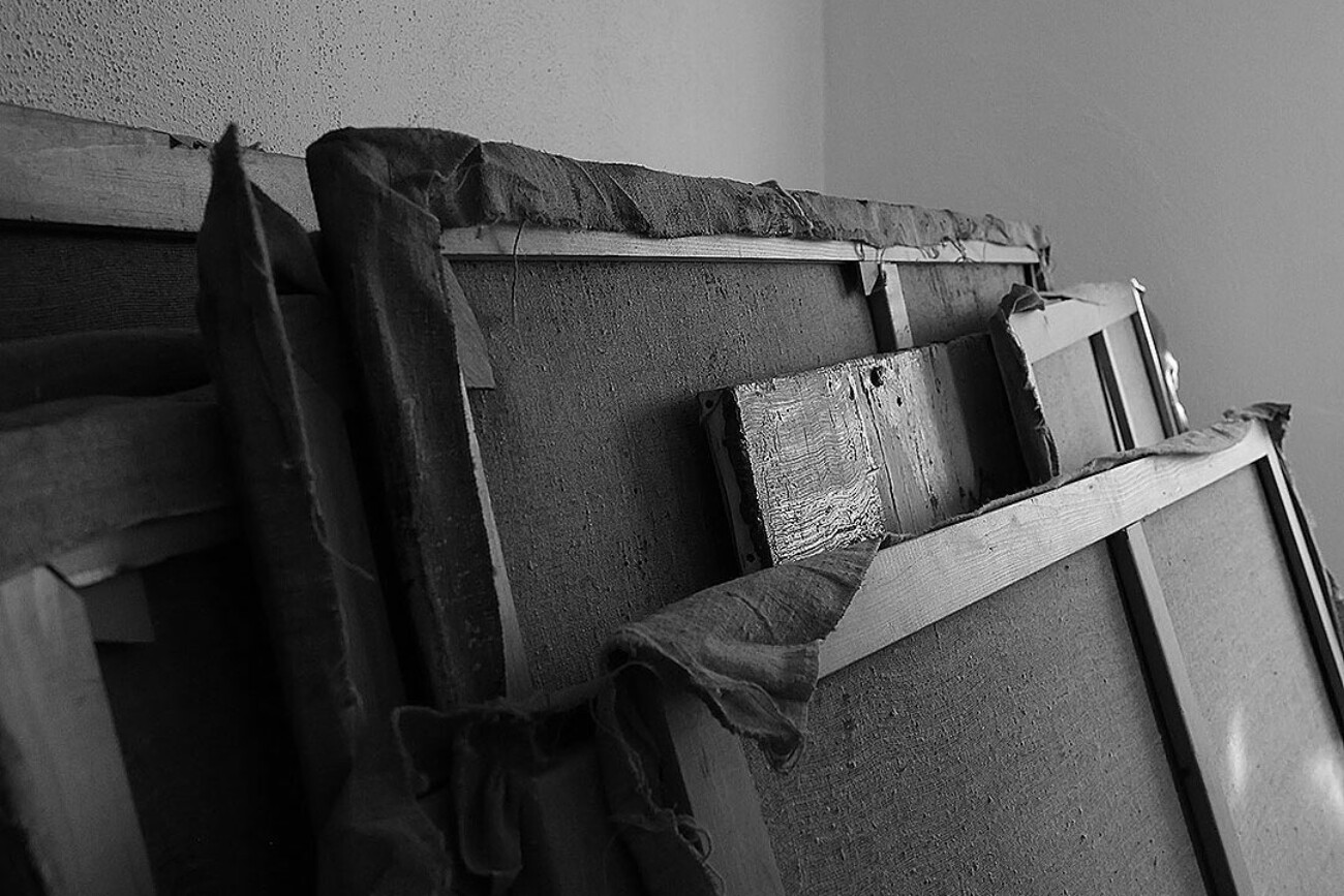 From 1998 to 2018, the oil paintings were stored in a large wooden box on the premises of Ilies -Transport, a Cologne haulage company, and were even moved once. The works were in total darkness for 20 years without anyone looking at them. In 2018, on a sunny day, the forwarding agent, the painter and his son Louis unpacked the paintings.